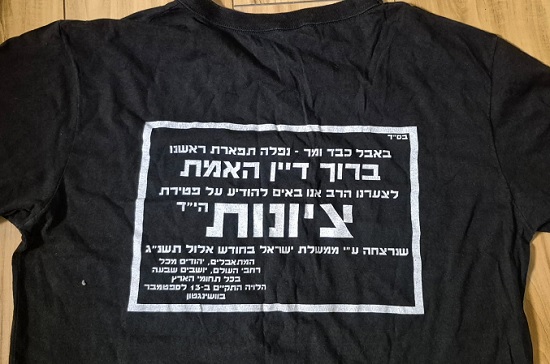 Эту футболку я привёз из Шхема, в 1995 г, когда гробницу Йосефа сдали бандам головорезов Арафата. Это был последний заход в Шхем, люди ехали туда, плача, прощаться с местом, откуда началась наша история в Эрец-Исраэль. И которое безродные космополиты-ословитяне сдали, как ненужный утиль.